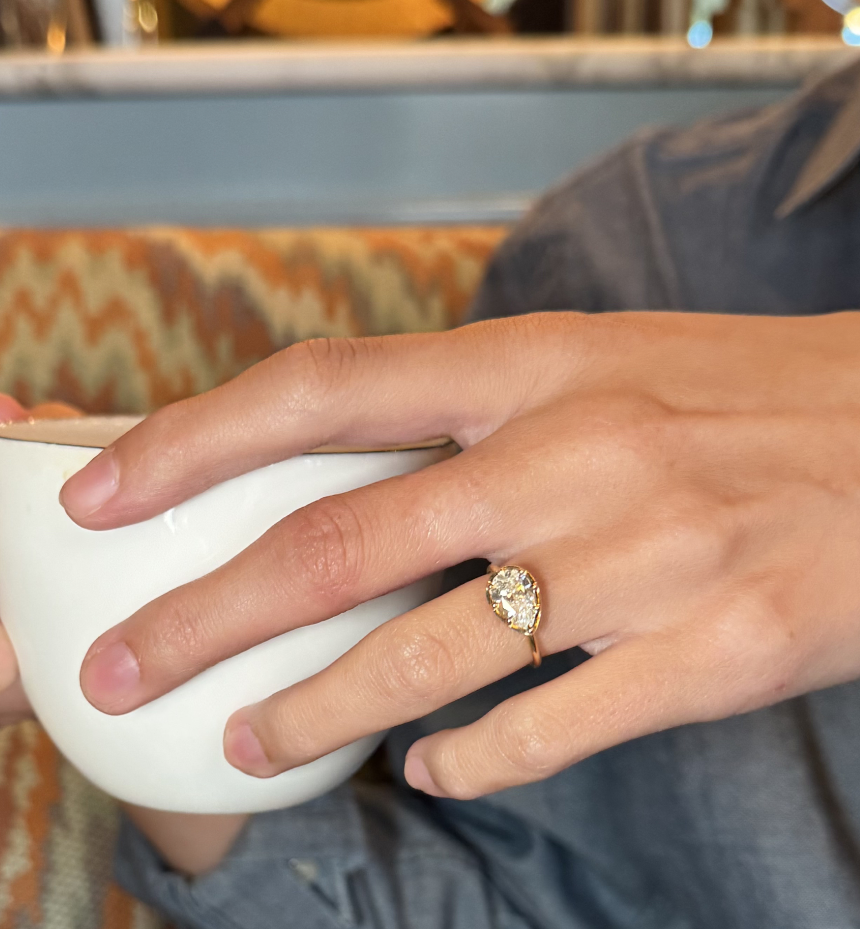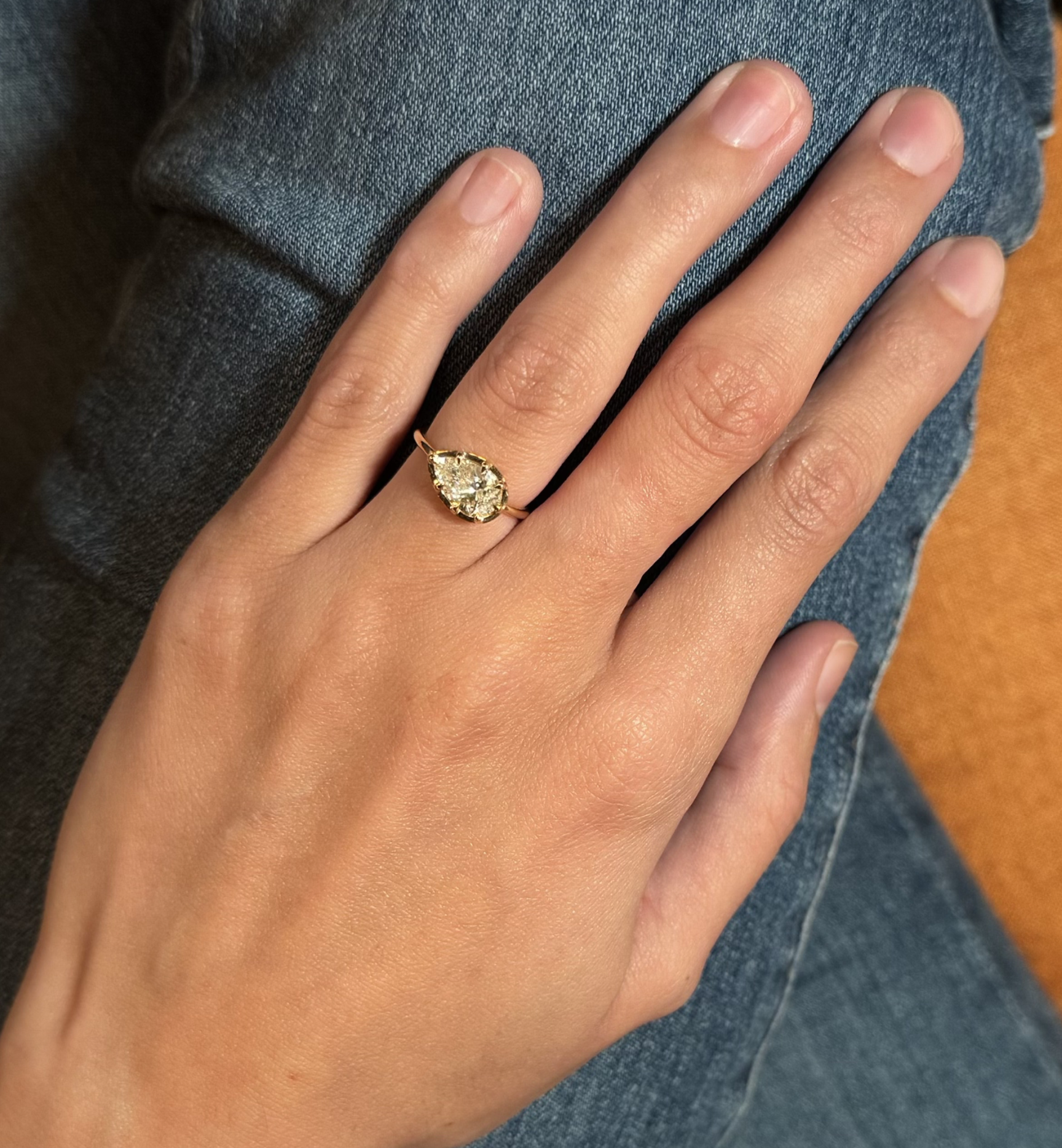 A 1 carat lab-grown pear-cut solitaire, the Osmose Ring embodies harmony and timeless elegance.