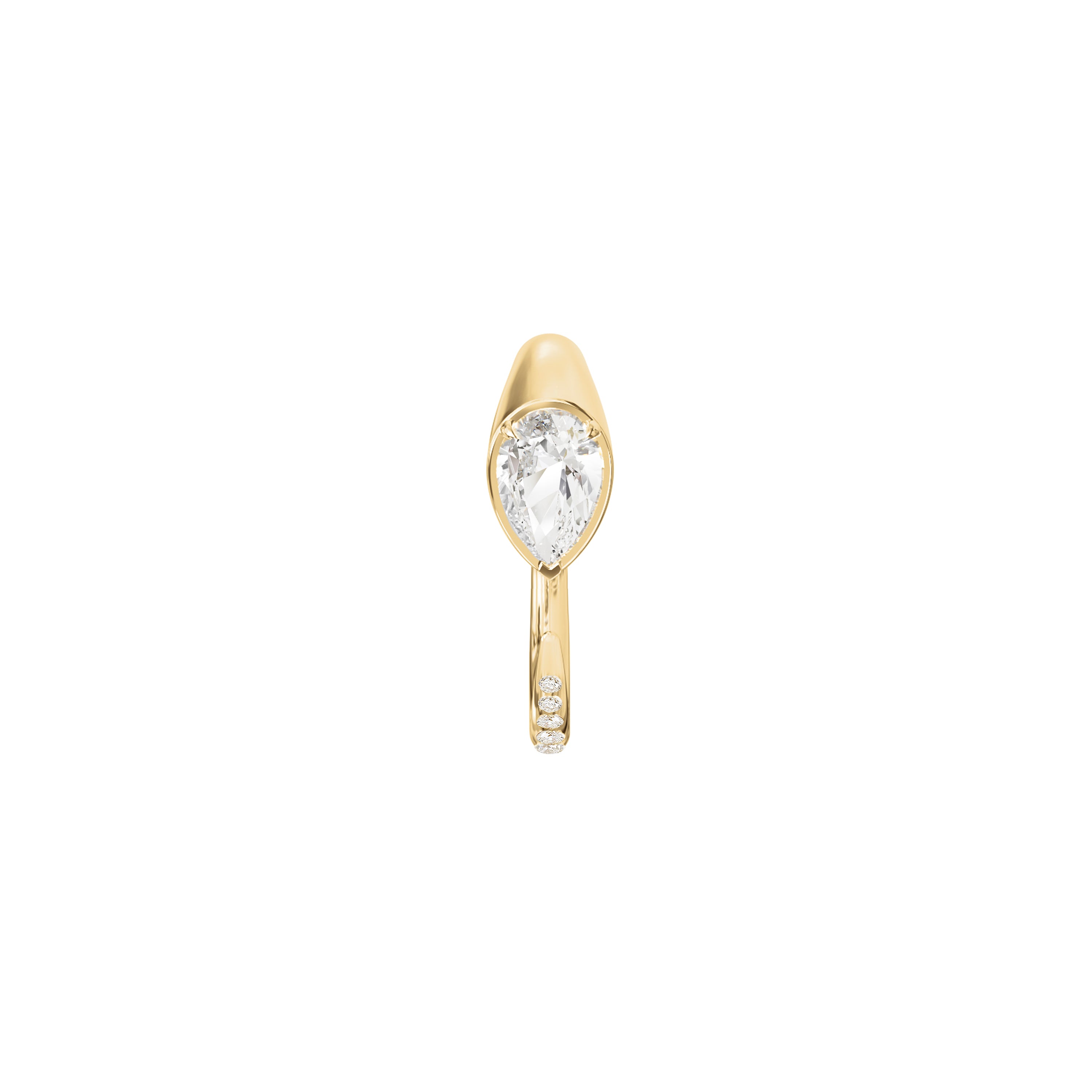 The Sornette ring is adorned with a 0.75ct pear-shaped lab-grown diamond. Five diamonds complete its tail and contrast with the roundness of the curves of the yellow gold. To wear alone or in accumulation.