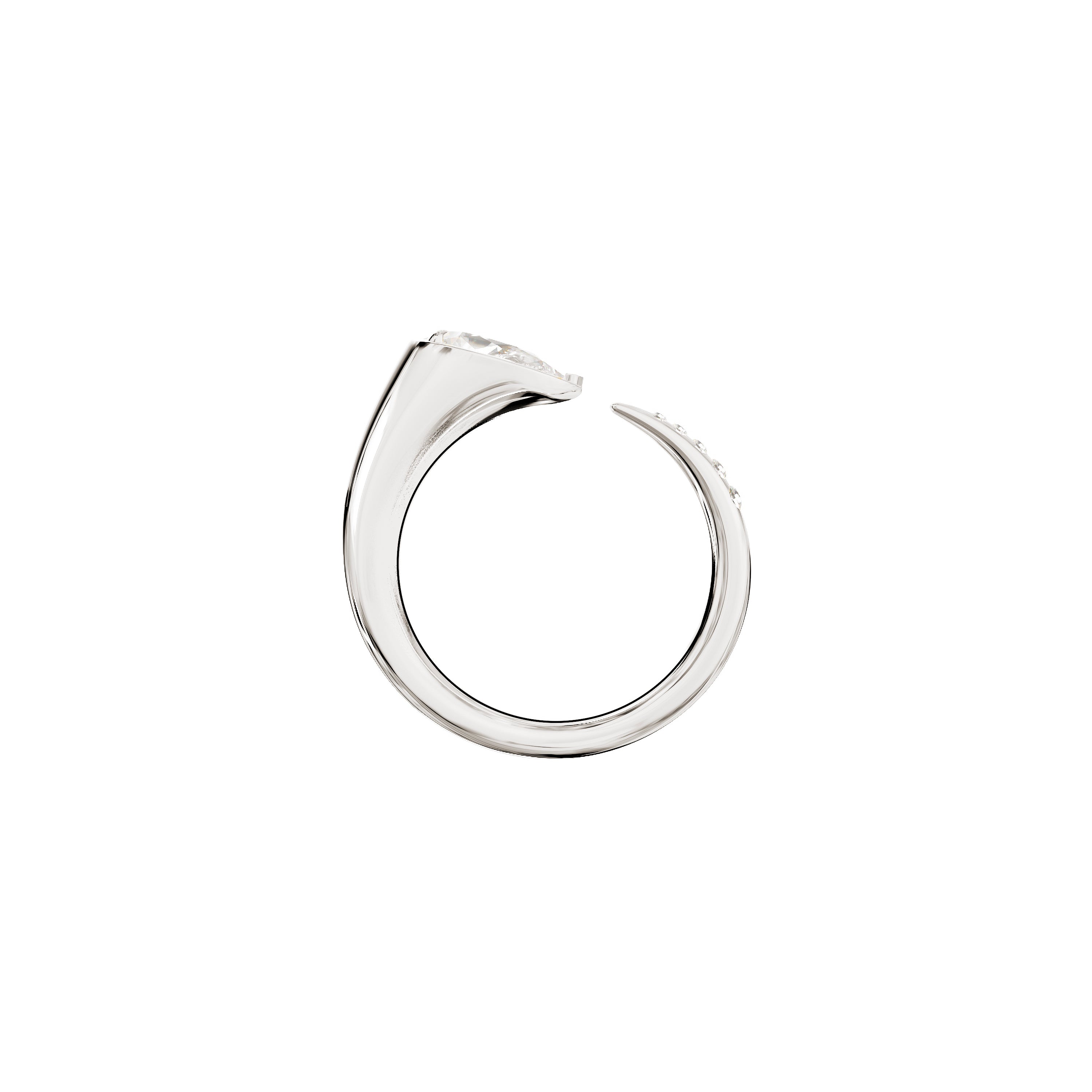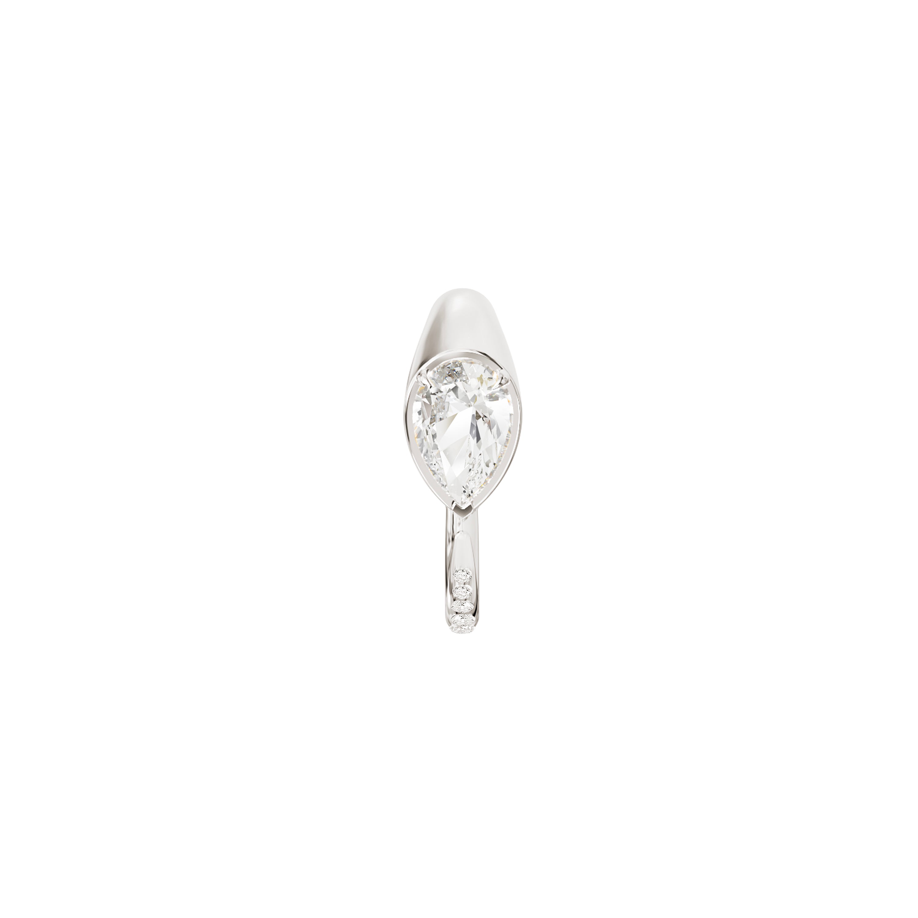 The Sornette ring is adorned with a 1ct pear-shaped lab-grown diamond. Five diamonds complete its tail and contrast with the roundness of the curves of the white gold. To wear alone or in accumulation.