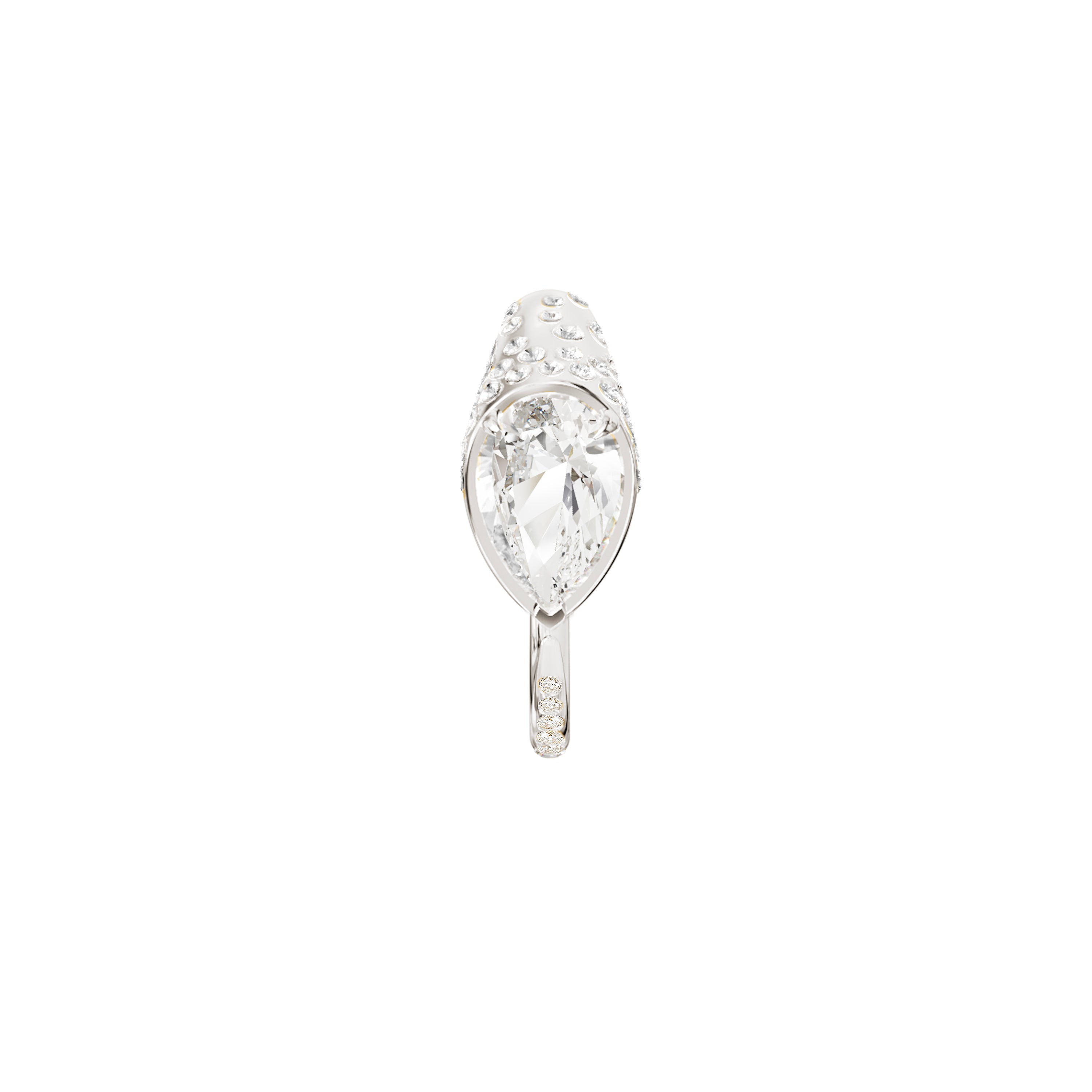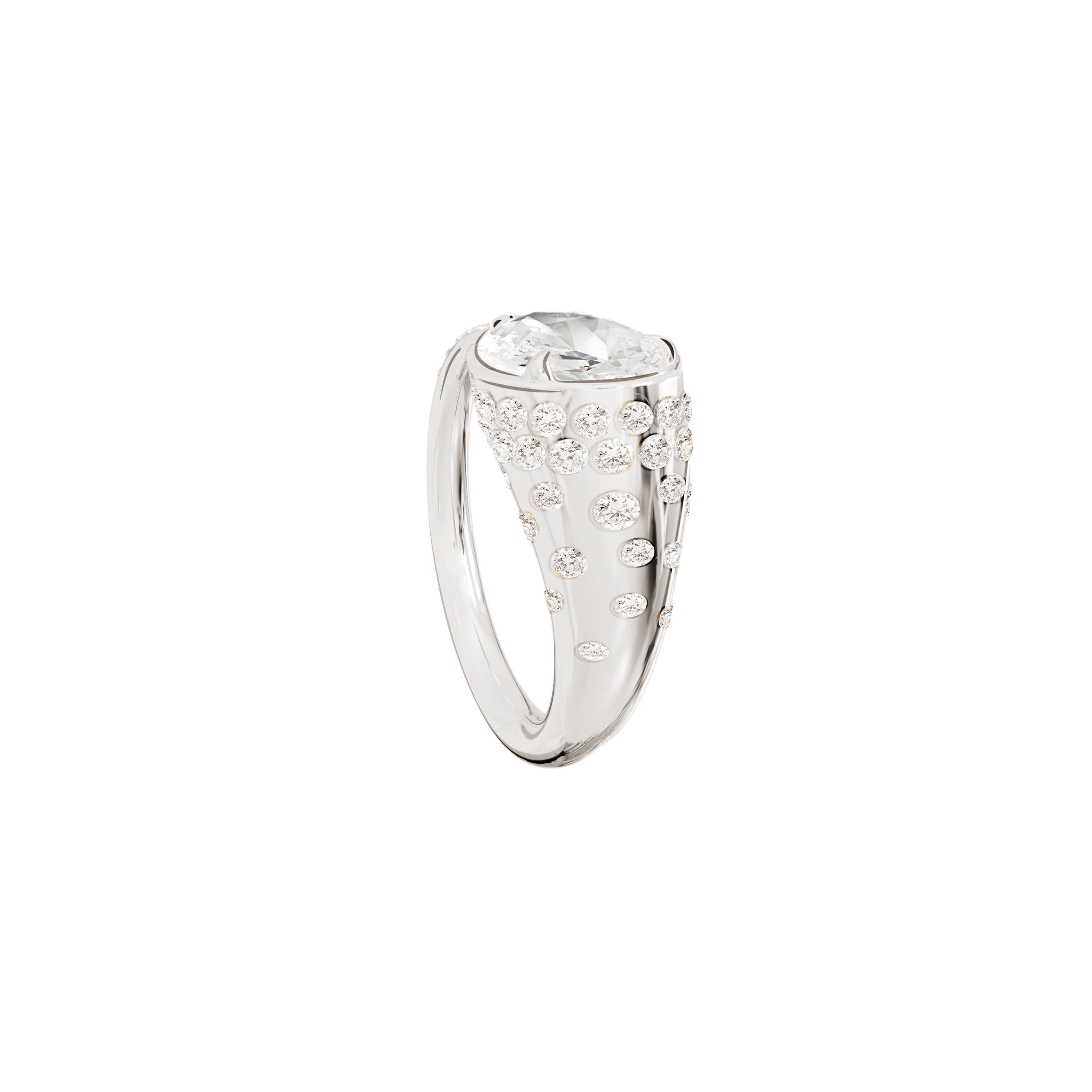 The Sornette ring is adorned with a 2ct pear-shaped lab-grown diamond, and his lab-grown diamonds dots. Five diamonds complete its tail and contrast with the roundness of the curves of the white gold. To wear alone or in accumulation.